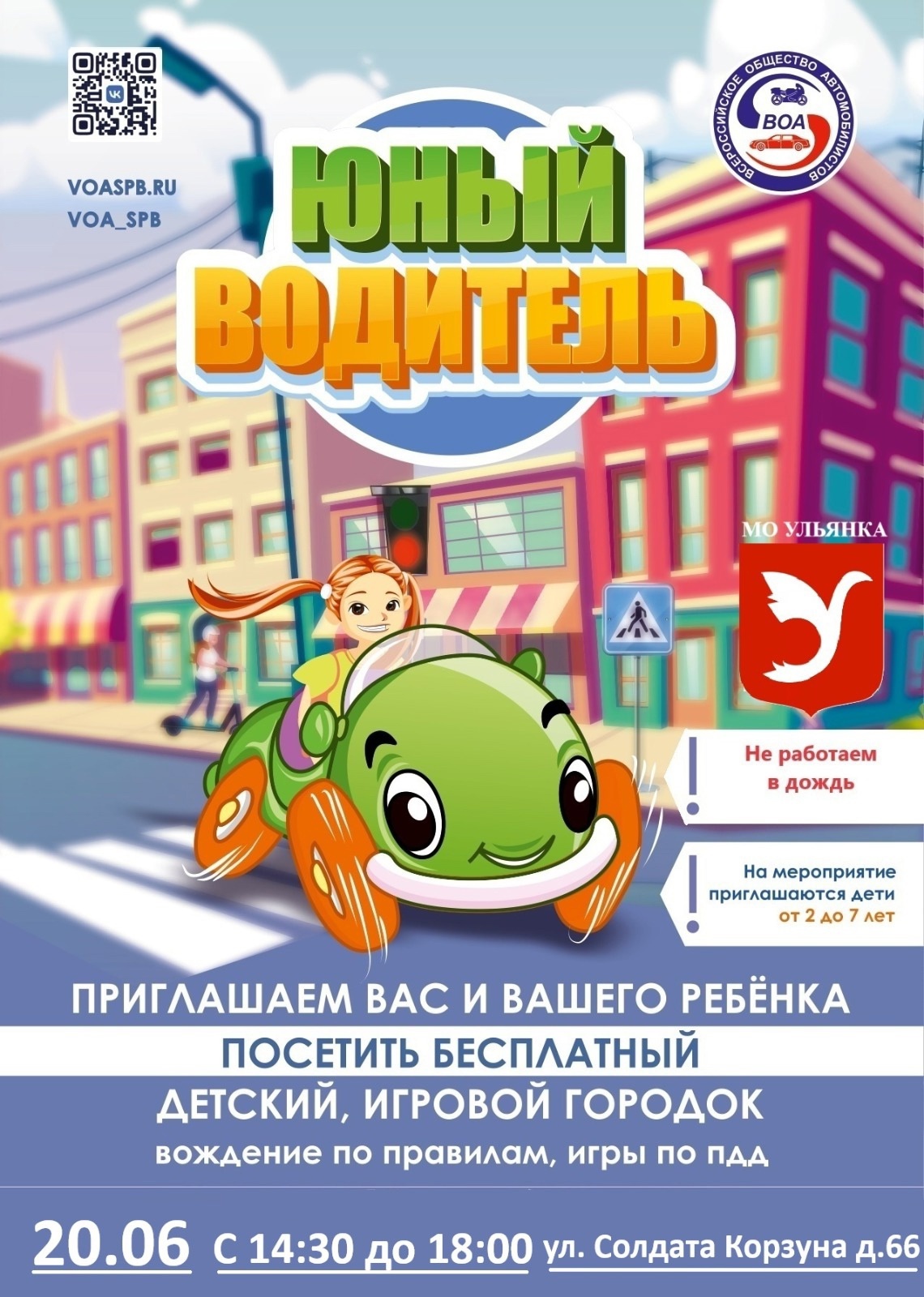 Муниципальное образование Ульянка и Всероссийское общество автомобилистов приглашают ребят от 2 до 7 лет и их родителей в автогородок