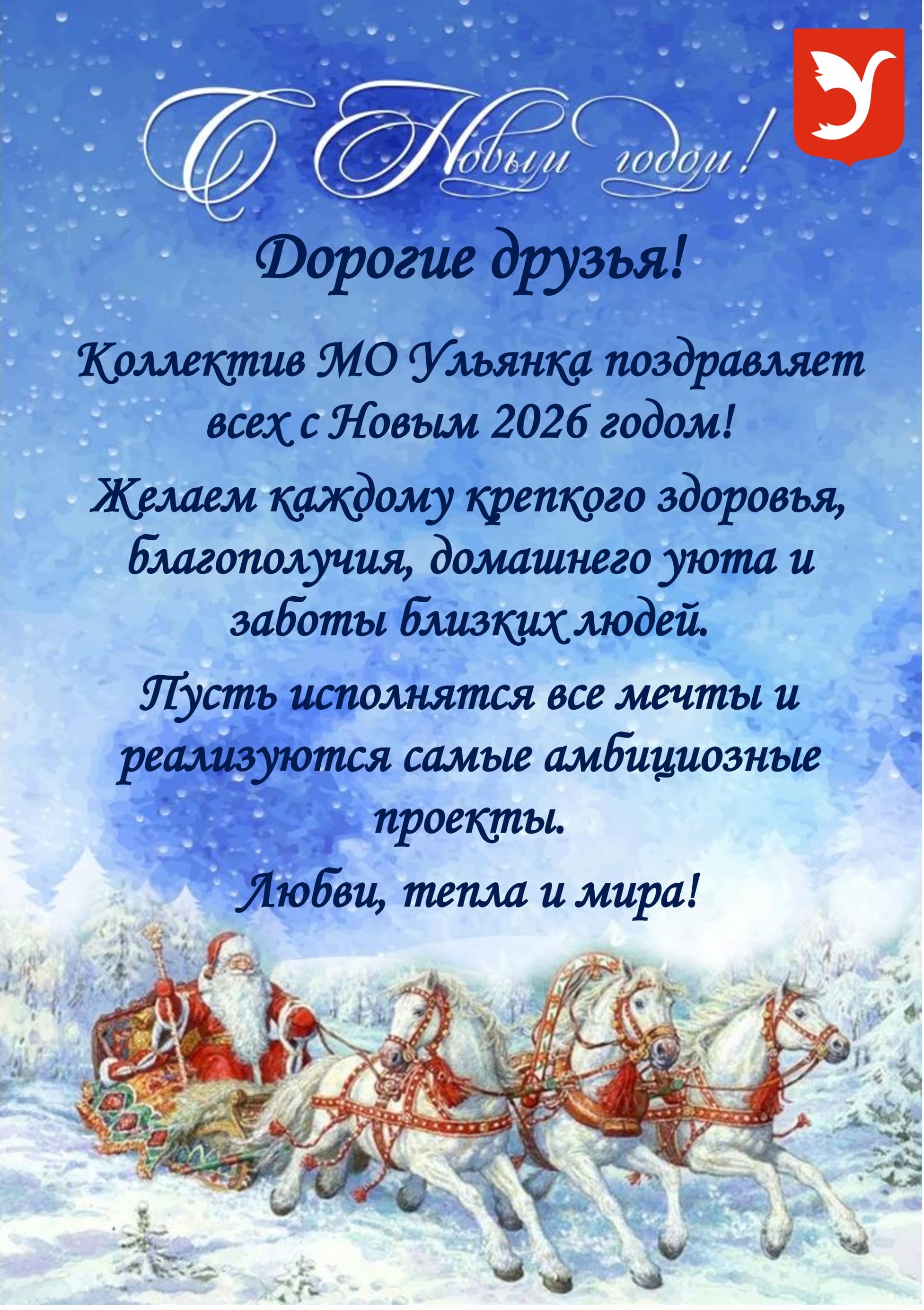 Коллектив МО Ульянка поздравляет всех с Новым 2026 годом!